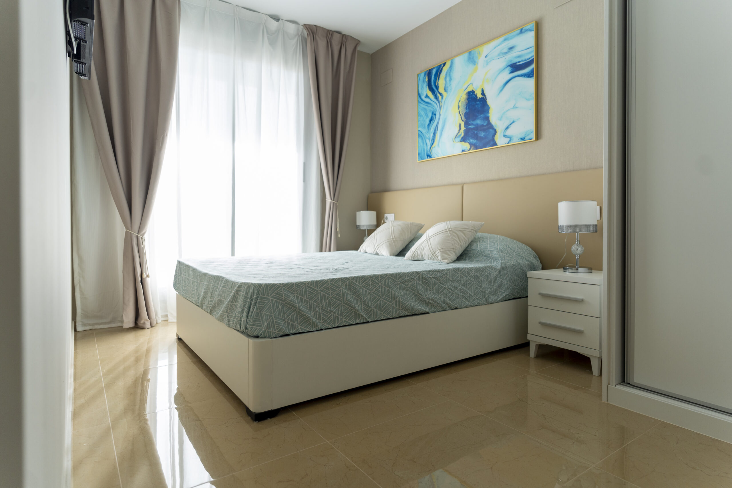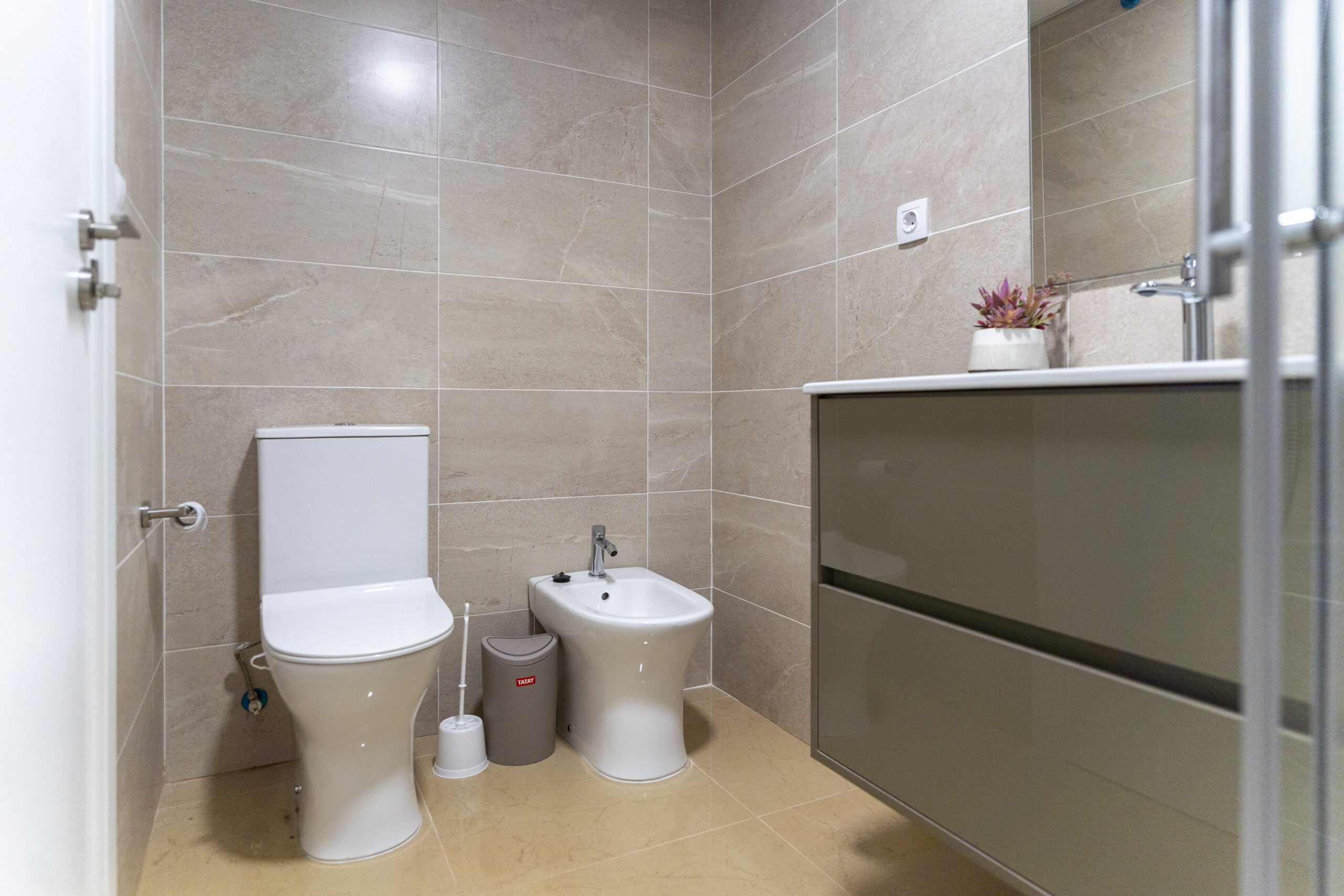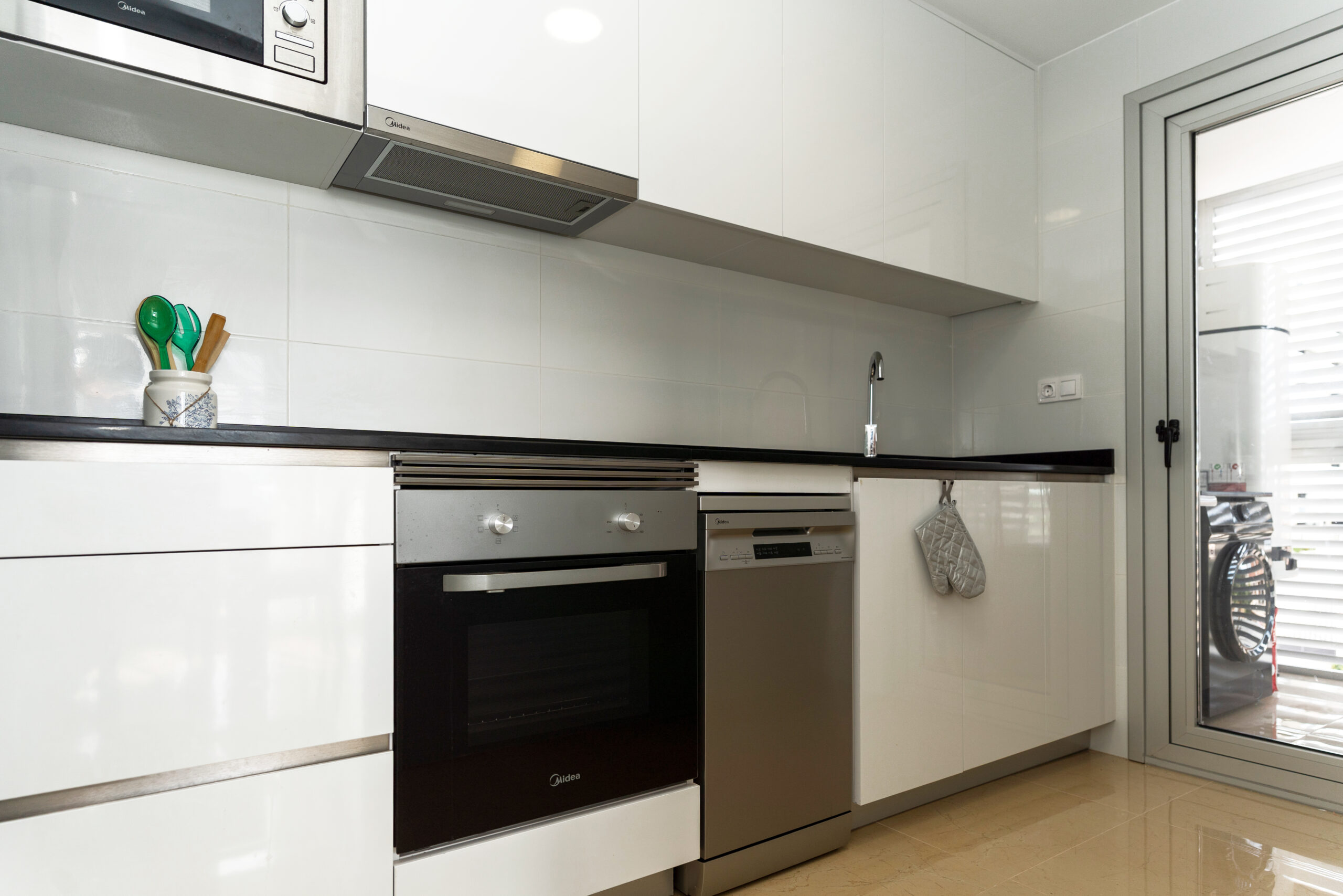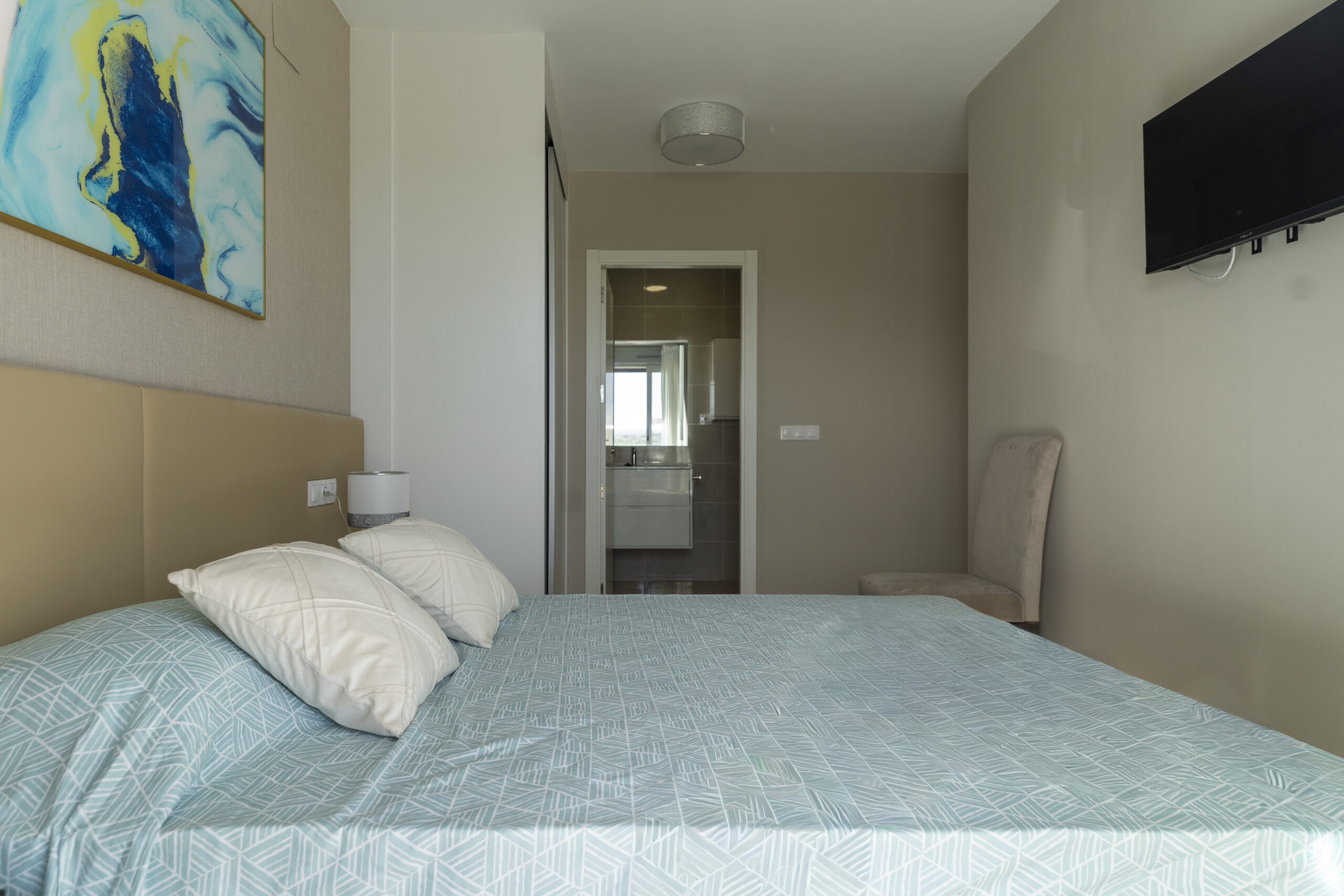 Jede Wohnung ist ausgestattet mit einer Klimaanlage, Spül- und Waschmaschine, Geschirrtüchern, Handtüchern, Seife und gemütlicher Baumwoll-Bettwäsche.