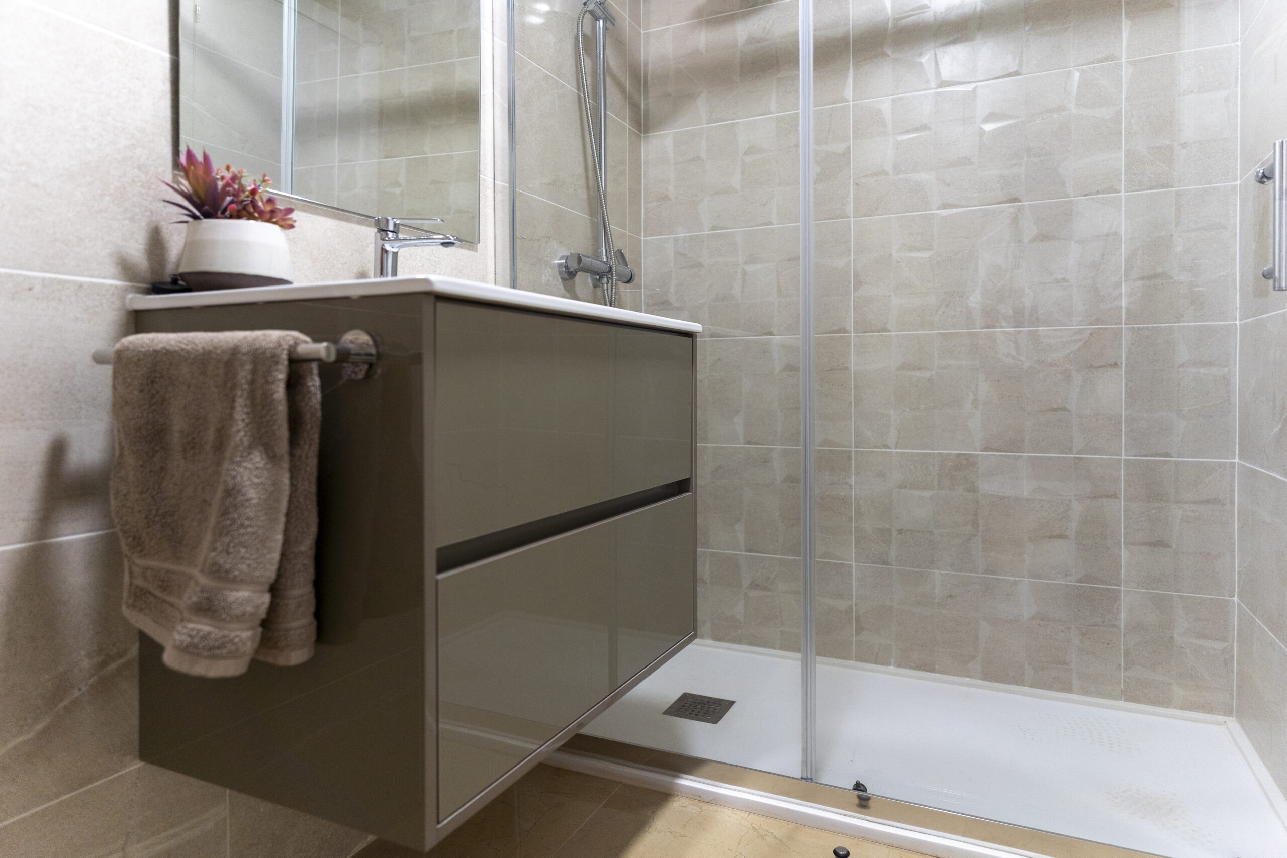 Mit den eingebauten Klimaanlagen können Sie die Wohnung kühlen oder heizen, je nach Jahreszeit.